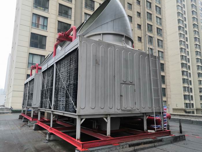 馬達(dá)、風(fēng)機、減速器(一般為皮帶減速速器),在冷卻塔頂部即為機械抽風(fēng)式冷卻塔,在冷卻塔底部即為機械鼓風(fēng)式冷卻塔。